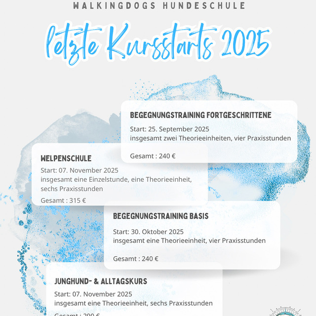 Außerdem bieten wir in unserer Hundeschule neben der Welpenschule auch viele weitere Kurse an. Schau dafür einfach unter unserer Rubrik Hundeschule.